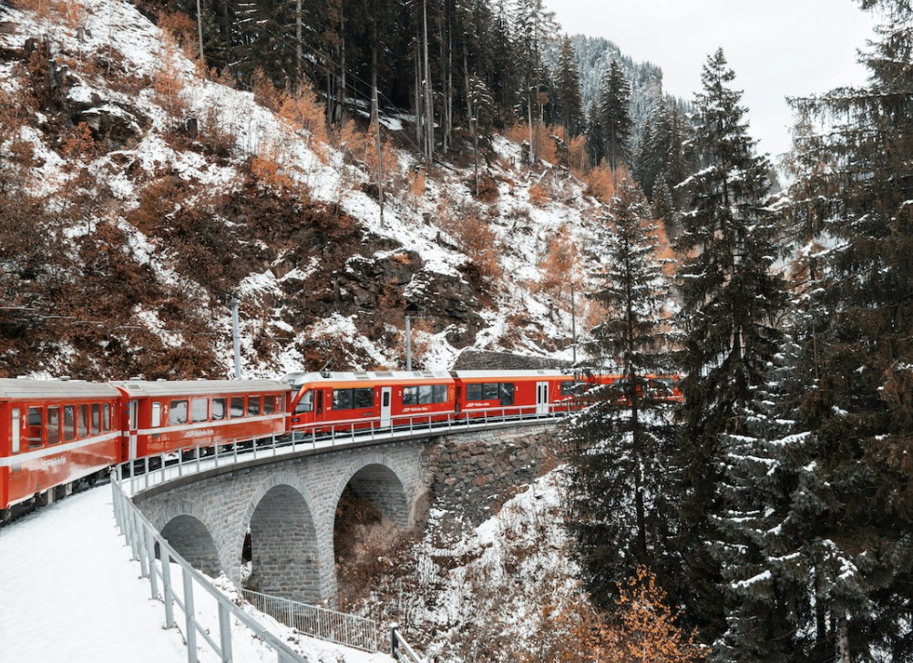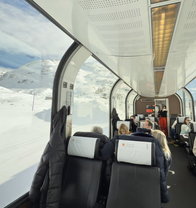 Io ho preso il trenino a Tirano e sono scesa a fine percorso a Saint Moritz. La sera ho soggiornato a Livigno. Il panorama è molto bello ma ci sono stata a fine settembre che era ancora tutto verde. Non oso immaginare la sua bellezza durante il periodo invernale, con tutta la neve e le cime bianche ☃️❄️🏂